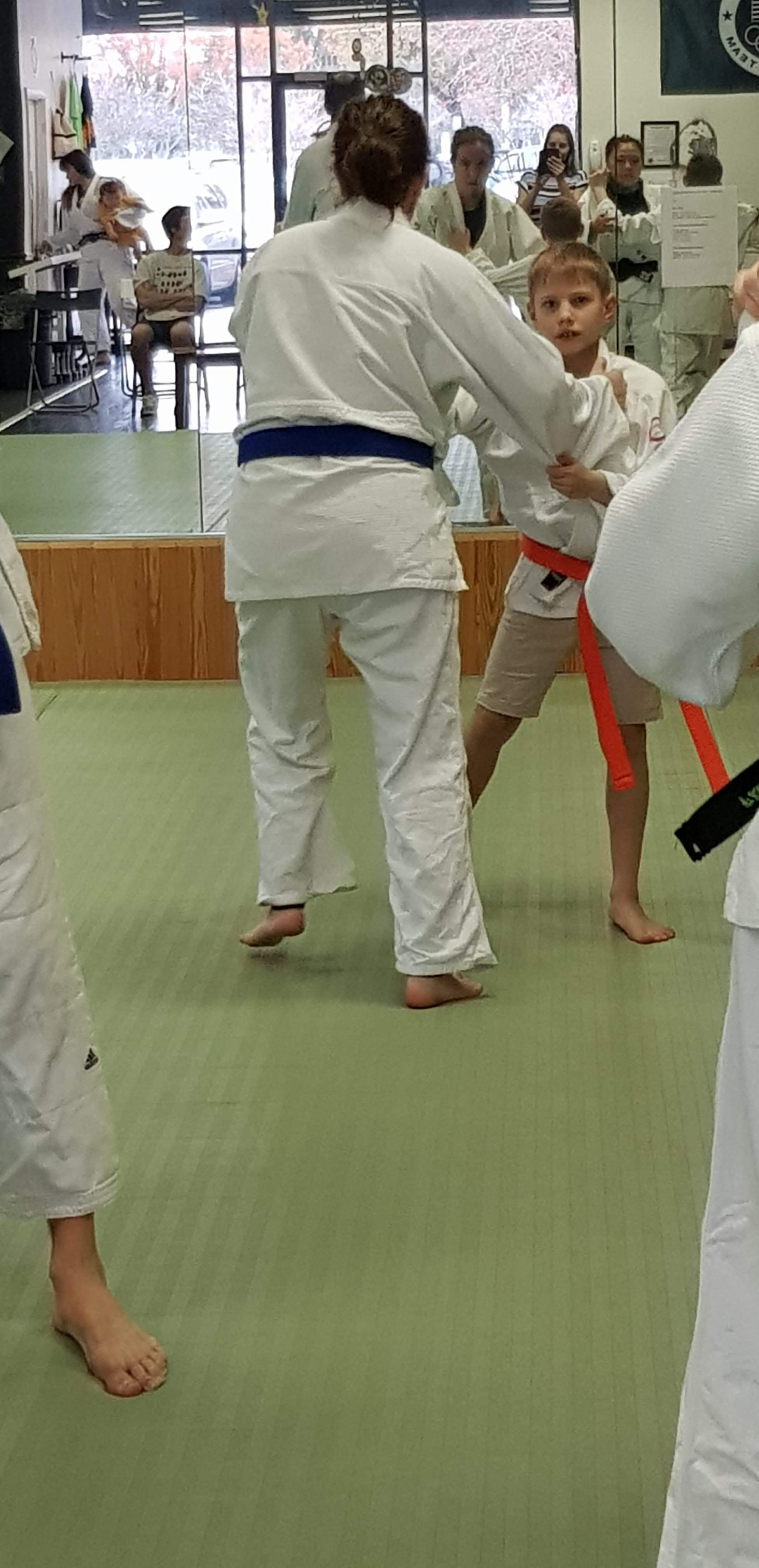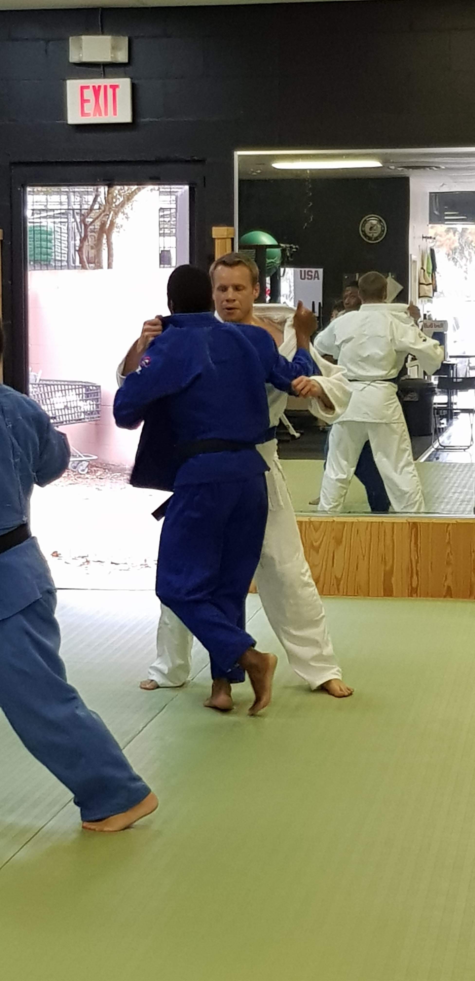 På jullovet fyllde jag 40 år och familjen firade med en resa till Florida. Jag tänkte att det vore häftigt om barnen fick gästträna hos någon amerikansk judoklubb när vi ändå var där och jag började leta runt på nätet vad som fanns i närområdet i Orlando där vi skulle bo. Jag hittade välrenommerade Sasaki Judo https://www.sasaki-judo.com/ som drivs av paret Shinjiro Sasaki och hans fru Rieku, två superduktiga Judokas. Givetvis var jag och mina söner varmt välkomna. De ordnade till och med fram dräkter så vi slapp ta med dem i resväskan över atlanten. Vi hade med oss lite fina presenter från IK Södra som tack för deras gästfrihet och det visade sig vara väldigt passande då Rieku fyllde år den dagen vi var där.
